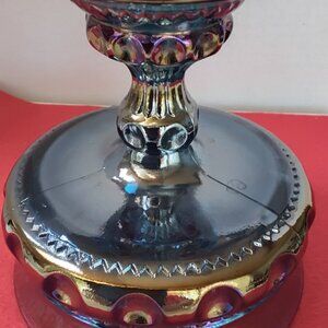 Indiana Glass Iridescent blue compote bowl (Thumb Print Design)