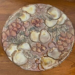 Indiana Glass Rainbow Garden Fruit Textured Glass Round Serving Platter