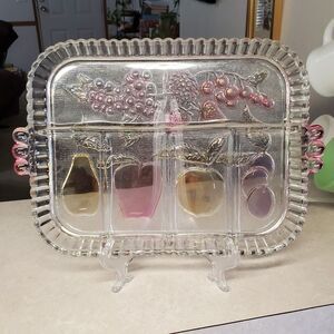 Vintage Indiana Glass Rainbow Mist with Fruit 5 Part Divided Relish Serving Tray.