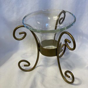 Indiana Glass Scroll Candle Holder Set. Crystal Glass With Metal Gold Support 6"