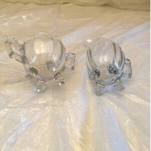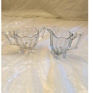 Indiana Glass Sugar Bowl and Creamer Pitcher Set Colonial Notched Clear 4 Footed