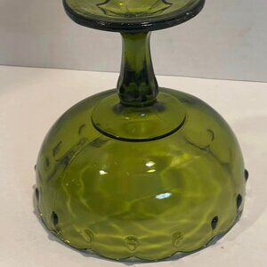 Indiana Glass "Teardrop Pattern" Scalloped Rim Frosted Green Footed Bowl Vintage