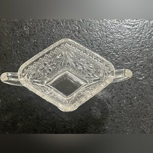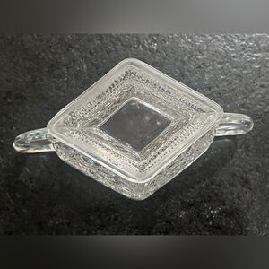 Indiana Clear Sandwich Glass Tiara Pattern Sugar Bowl Vintage 1980s In Excellent Condition. vintage glass no chips or cracks. Measures roughly 3 and 1/4" tall by roughly 5 and 1/2" long by 2 and 3/4" wide.
