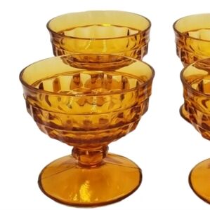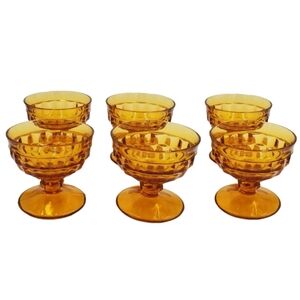 Excellent pre owned condition. Indiana Glass Whitehall Amber Cubist Sherbert or Champagne Glasses Set of 6. 3.75" tall 3.5" wide. No chips stratches or cracks