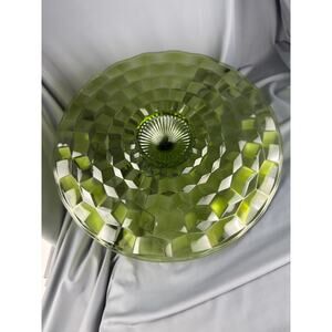 Vintage Indiana Glass Whitehall Cube Green Serving Tray with Handle Retro