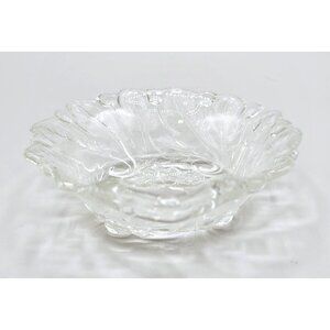 A single nappy dish made by Indiana Glass Co in the Wild Rose pattern. Heavily textured pressed clear glass.