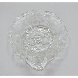 Indiana Glass Wild Rose Pattern Nappy Nut Candy Dish Handle Clear Pressed Glass