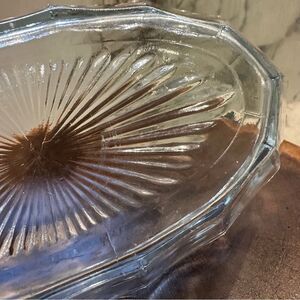 Elegant scalloped glass bowl. Perfect for decor or serving. Adds a touch of sophistication.