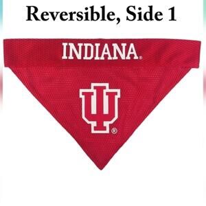 Keywords: Indiana Hoosiers, NCAA, College, Pet Bandana, Dog Bandana, Collar Bandana, Reversible, Home and Away, Pet Wear, Dog Accessory, Team Spirit, Game Day Accessory, Small Dog, Medium Dog