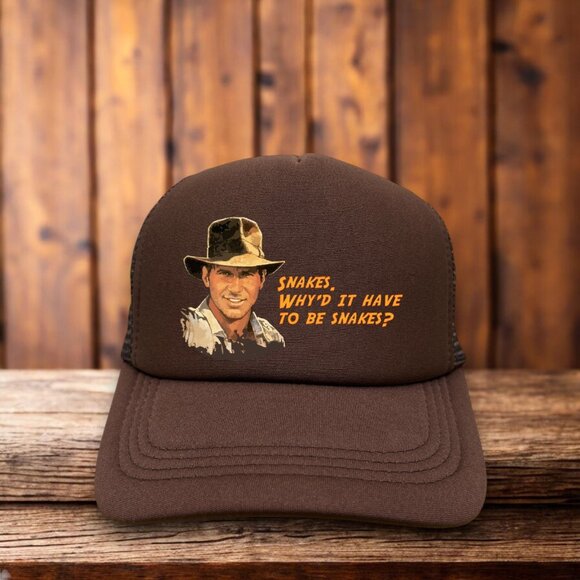 Indiana Jones Mens Trucker Hat Brown Why'd It Have To Be Snakes 80s Action Movie