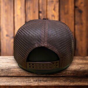 Features: Lightweight, medium crown, curved, foam front and mesh back, adjustable.