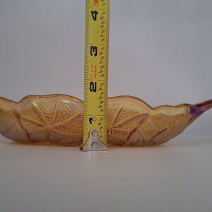 Indiana Marigold Carnival Glass Sunflower Celery Candy Dish Two Handles Vintage