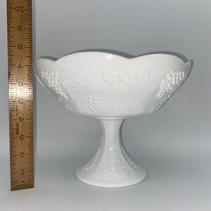 Indiana Milk Glass Fruit Punch Bowl Footed Pedestal “Grape & Leaves”