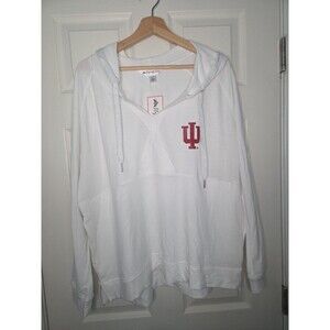 Indiana University Women White Hoodie Pullover Criss Cross Neckline Pockets Sz L