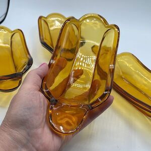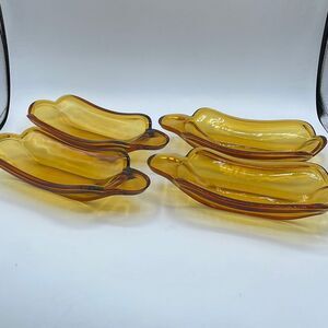This is for a set of four banana boats ice cream boats . Very heavy at almost 14ounces each. There are some flea bites on inside rim . There is a thinner glass rim there. I tried to point out in pictures. Nothing major.