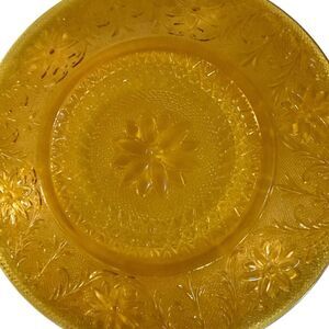 Indiana Tiara Pressed Sandwich Glass Amber Round Serving Tray Chop Plate