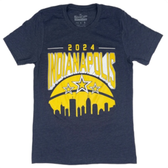 Indianapolis 2024 All-Star Basketball Weekend Tee – Navy & Gold Graphic