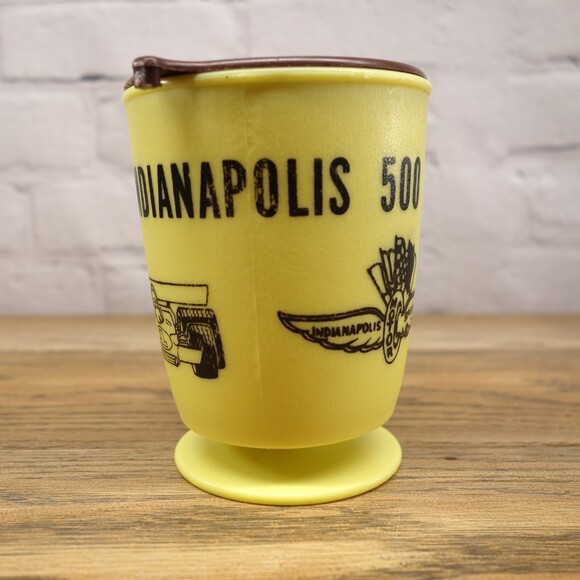 Indianapolis 500 Vintage Yellow Travel Coffee Mug Cup Whirley International