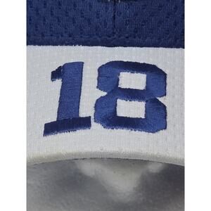 The Indianapolis Colts 18 Payton Manning Reebok Baseball Cap Strapback Hat is a stylish and versatile accessory for young boys who are fans of the Colts. Made from 100% polyester material, this blue baseball cap features the iconic Colts character on the front, making it perfect for showing team spirit during casual outings or activewear. The strapback design ensures a comfortable and adjustable fit, while the Reebok brand adds authenticity to the overall look. Whether it's winter, summer, fall, or spring, this hat is a must-have for young fans of the Indianapolis Colts.