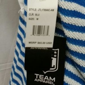 Bar stripe pattern in team colors with team logo on chest