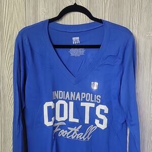 Indianapolis Colts NFL Blue Long Sleeve V Neck Shirt Womens Size Large NEW