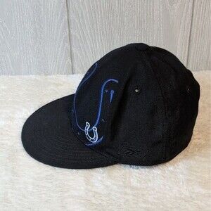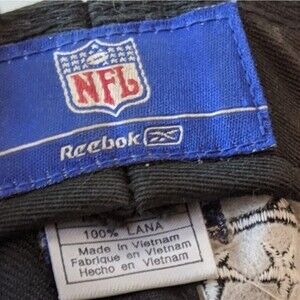 It is a official NFL Reebok fitted hat in black with blue detail.