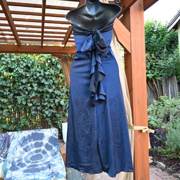 Incredible, flattering dress by independent San Francisco designer, Yugala Priti. The epitome of versatility! Tie the ruffly straps into a halter, a strapless neckline, wrap some off-the-shoulder sleeves – get creative!