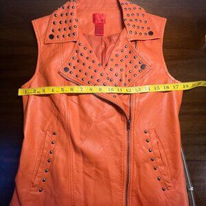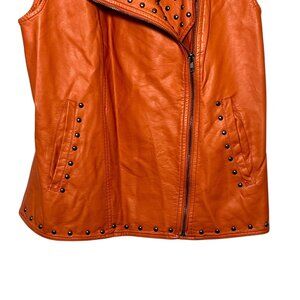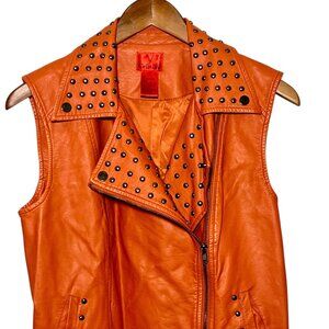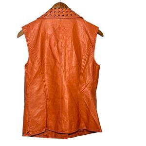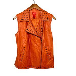 Indie Grunge Western Hippie Boho Leather Studded Zip Jacket Vest Orange Medium