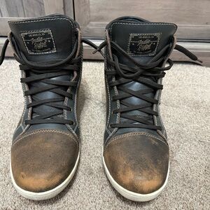 Only use them a handful of times and for limited time on the few occasions. They are an excellent condition and very comfortable. They are motorcycle riding boots but very stylish as well and waterproof. I never used them to ride a motorcycle.