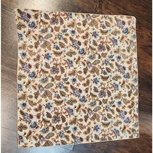 Indienne Floral Bandana Kerchief Stitched Beige Neutrals Red Blue 20 x 20
