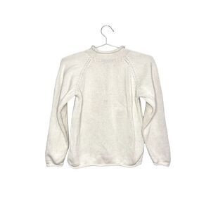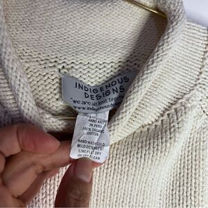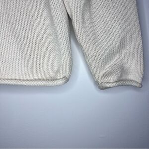 100% organic cotton. Hand knit in Peru. Rolled cuffs and hem. Off white color