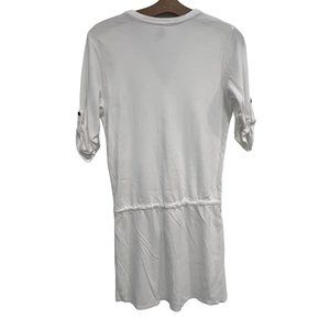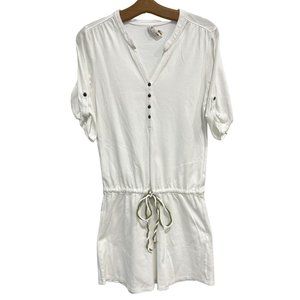 Indigenous Henley Drawstring Mini Dress Womens XS White Organic Cotton Summer