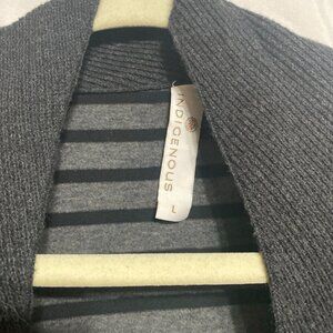 Indigenous Striped Long Sleeve Open Cardigan L Gray Sweater. Crafted from a comfortable cotton. Pockets. Listed size: L. Approximate hand measurements — chest: 38", length: 33", sleeve length: 33.5". Hand Loomed Organic Cotton