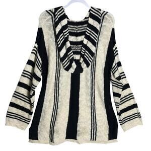 Indigenous Sz L 100% Organic Cotton Knit Hoodie Striped Pullover Beachy Peru