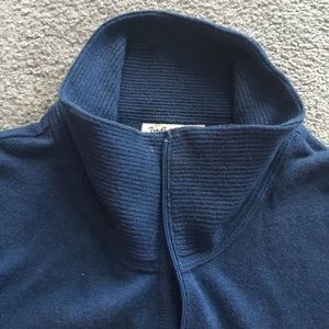 Indigenous size small blue zip up sweater. Organic cotton and tensel. Hand made in Peru. Pit to pit measures 18 inches lying flat. Shoulder seam at arm to bottom of sweater measures 21”.