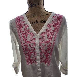 Size medium 19" armpit to armpit 26" long Body: 100% Cotton Decoration: 100% polyester