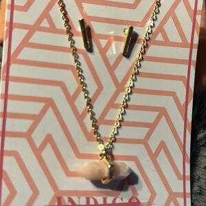 Indigo Authority Necklace and Earring Set Gold/Pink