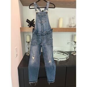 Size Small Indigo Blue Distressed Maternity Overalls. Adorable and comfortable on! VGUC, only worn 2/3x