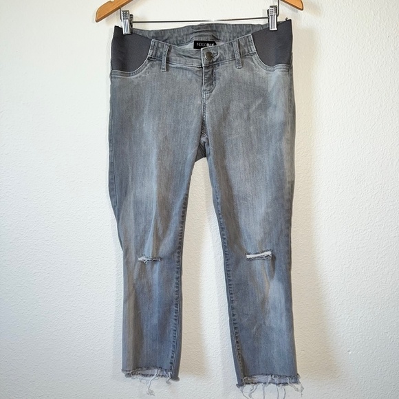 Indigo Blue Gray Denim Raw Hem Low Rise Under Belly Maternity Jeans Size Small