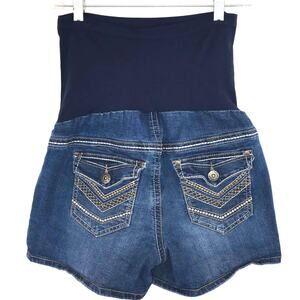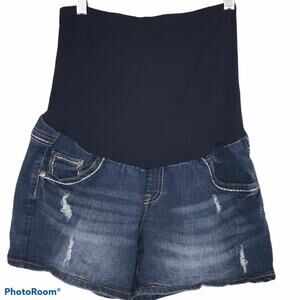 Indigo Blue Maternity Blue Denim Burmuda Shorts "Secret Fit Belly" Sz 12