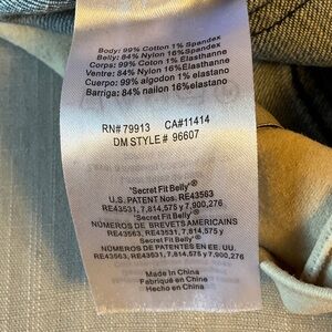 Trendy skinny jeans with a comfortable tan waistband. Features a stylish distressed look.