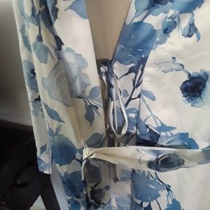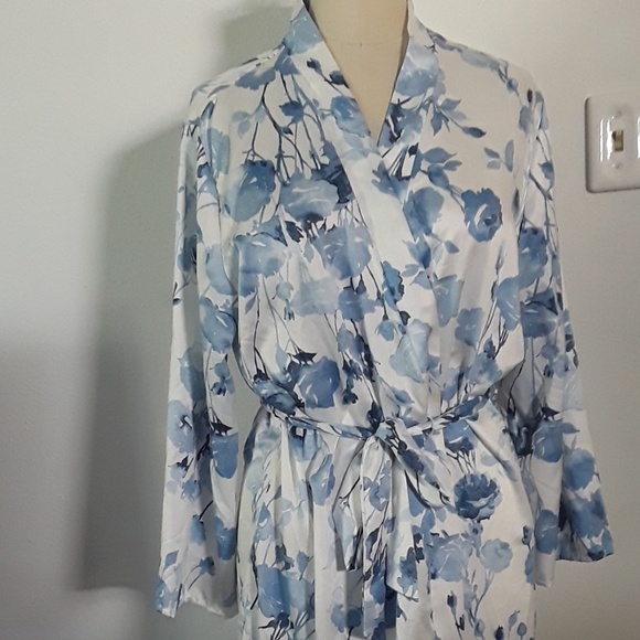 Belted wrap robe wuth insude tie. Silky material probably acetate or polyester. Tag is missing.