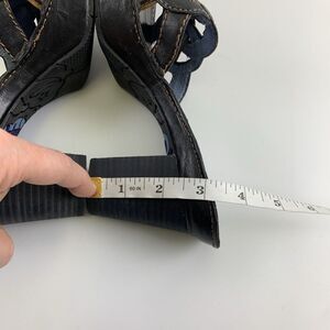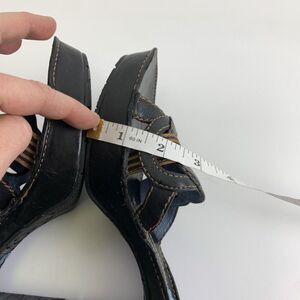 Indigo By Clarks Slide Heel Sandal Black Brown Leather Chunky Woven Womens 7.