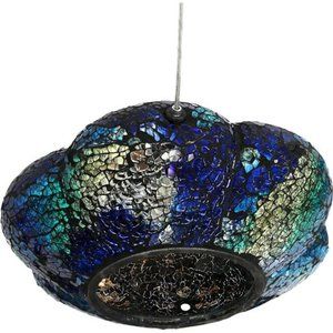 Indigo Flower 9-Inch Round Fly-Through Bird Feeder - Crackled Glass Design