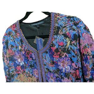 Indigo Moon Beaded Open Front Cardigan with Sequins sz XXL Purple Pink Gold NWT
