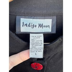Indigo Moon Black Embroidered Jacket Floral Coat Mid Length Colorful LARGE