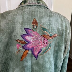 Boho jacket • Patchwork blazer • Artistic embroidered jacket • Festival coat • Statement piece • Indie boutique style • QVC Indigo Moon 1X • Floral applique • Shimmery sequin details • Soft pastel tones • Wearable art • Vintage-inspired • Collectible piece