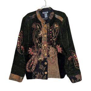 Indigo Moon Embroidered Paisley Jacket Womens Size Medium Green Artsy Boho