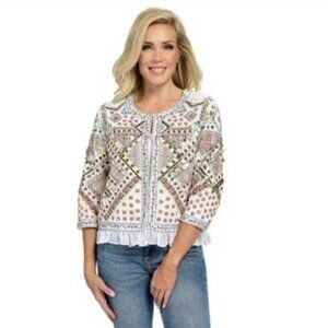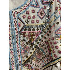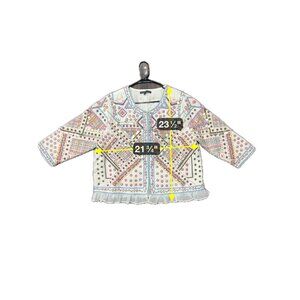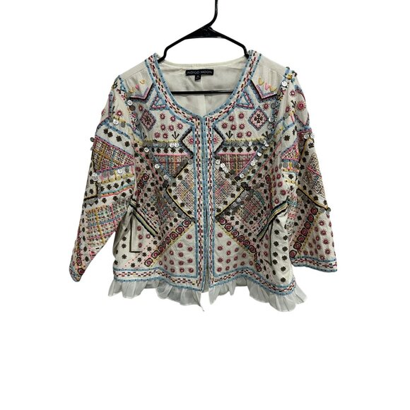 Indigo Moon Embroidered Ruffle Jacket Multicolor Sz XL Embellished Beaded Artsy