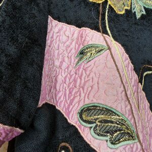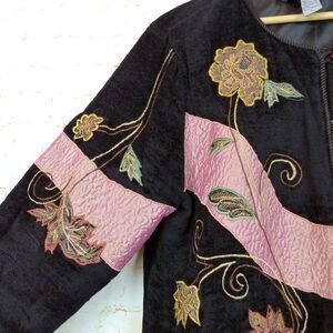 Indigo Moon Jacket Women L Black Pink Velour Floral Embroidered Patchwork Boho Artsy